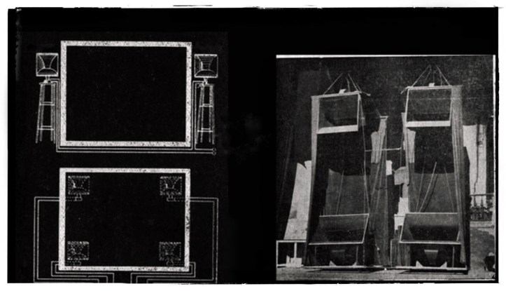 As we know the 1st sound installations for talkies were designed to be rolled onto the stage of theatres. They were rolled out when it was “movie night” ! Then rolled back in….this carried on until dedicated theaters were installed as talkies literally took over the “scene”. Just imagine this huge construction with all wires hanging off etc….this is without doubt a rare image of a western electric 12a and 13a installation very early indeed, 1926? Also image taken before the advent of sound transparent screens. The screen is above the horns, you can notice how the 12a’s are pointing upwards to get the sound to the balcony audience. It’s not evident why there is drappimg around this tower of horns, perhaps to keep them out of sight when not in use?