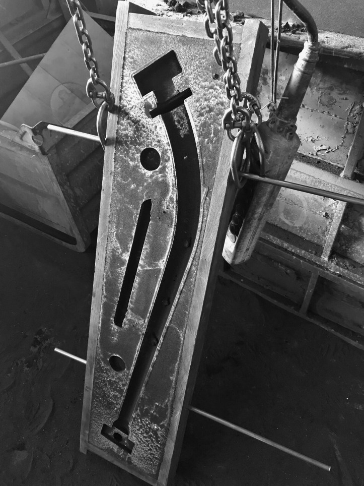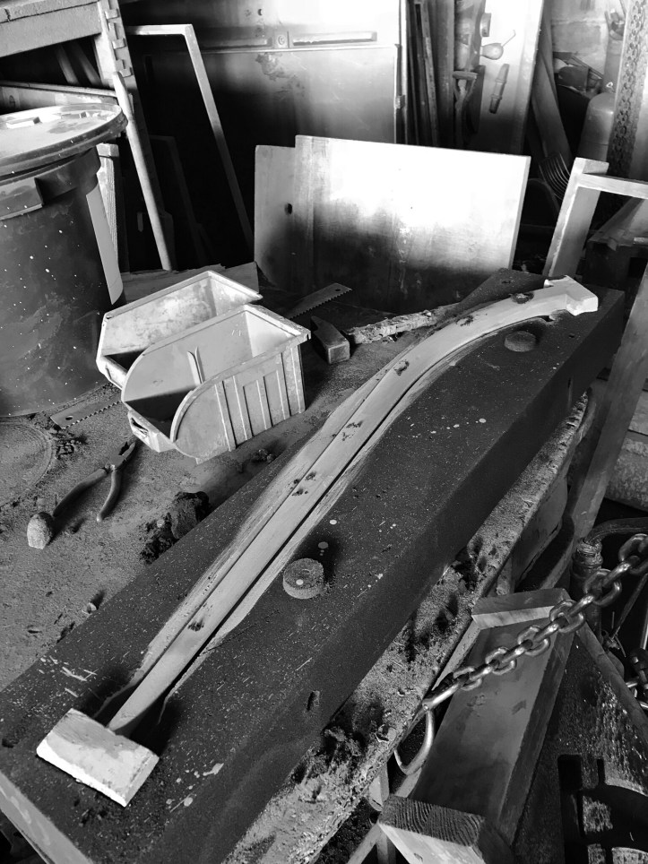 Here a few images showing the mould ready for the molten iron. We run a test to then break the throat just to check the regularity of the throats wall. All seems set.