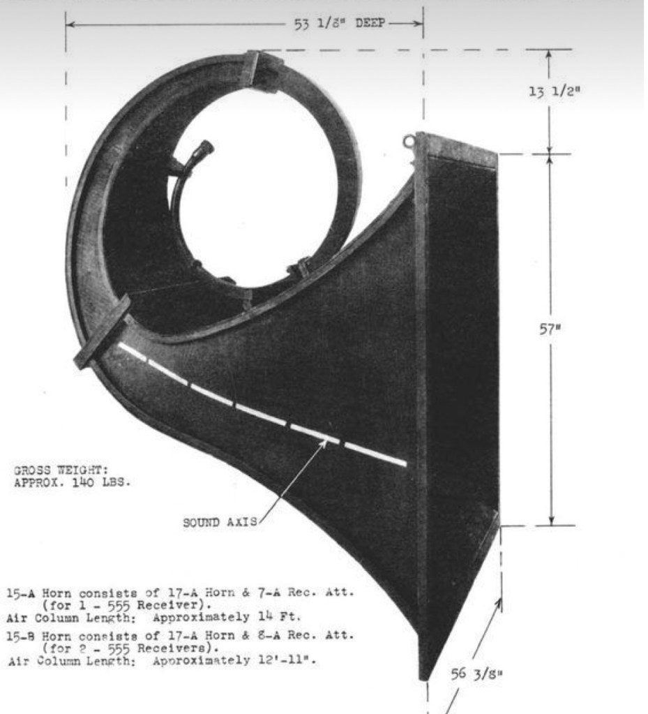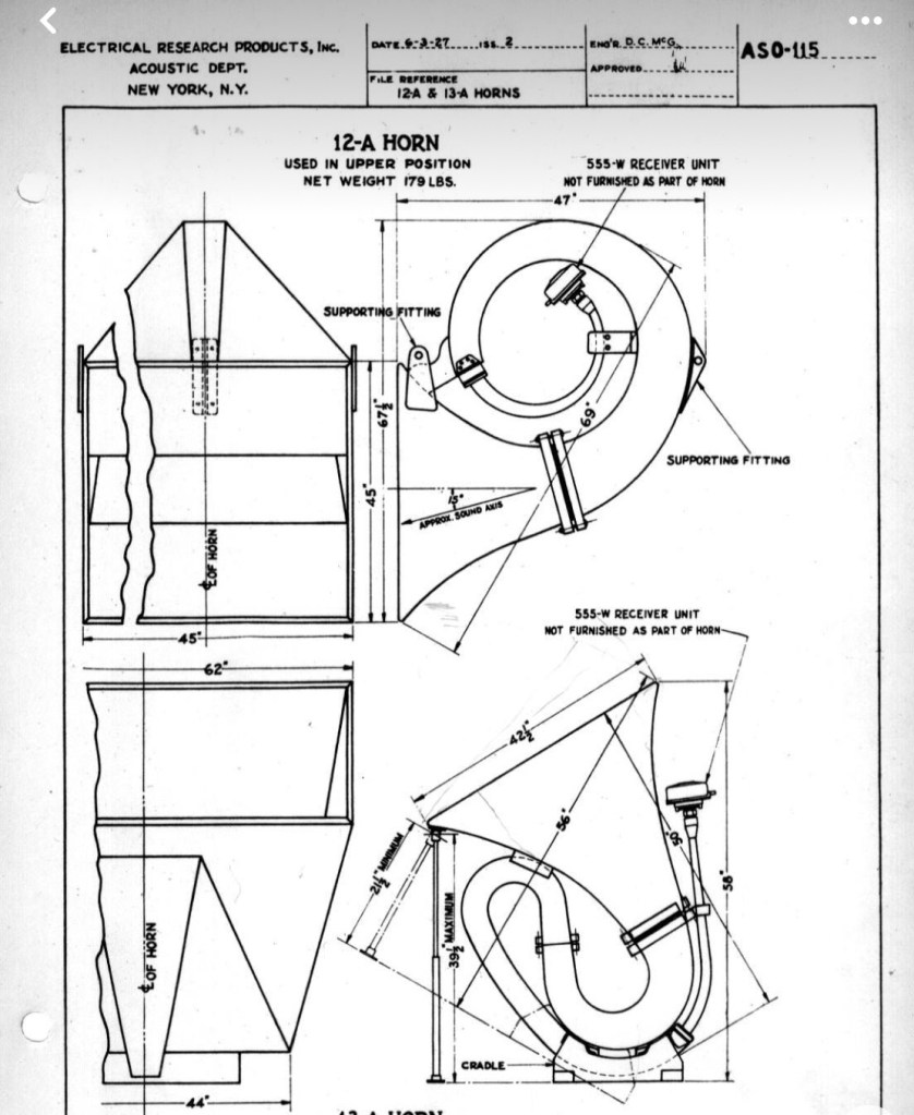 The upper frequencies of the 555 fitted to a large Western Electric horn are a little edgy, typically above 5khz. Partly due to the 555 but also because of the curvatures and length of the horns. You will see cloth dampening in the mouth of the horn on some installations and it was at one time a fixed feature of the 15 horn and is systematic on the 16. It’s my belief that some place the horn mouth vertical to avoid dealing the this aspect of the horn. The conjunction of the horns design and 555 are the root issue. This can be addressed with careful attention to setup, filtering and partner electronics.